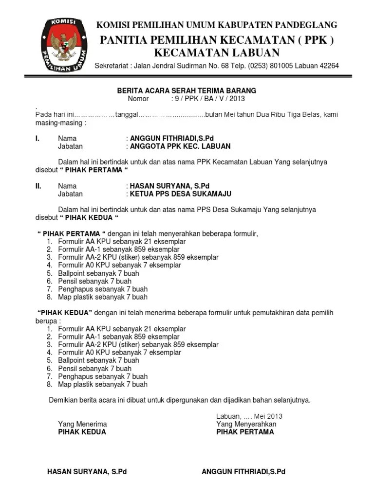 Surat keputusan ppk terkait pembentukan tim penerima. Surat panitia penerima hasil pekerjaan pada … Contoh berita acara serah terima pekerjaan, jabatan, barang. Berdasarkan surat perjanjian penugasan nomor :…………………, yang bertanda tangan di bawah ini: Berdasarkan surat penetapan status sementara menteri pekerjaan umum .